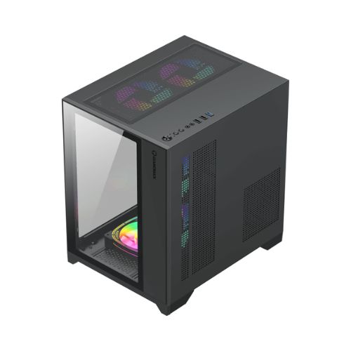 #### Viene con un panel de vidrio templado a la izquierda, un ventilador estándar de 120 mm preinstalado en la parte trasera y admite placas base hasta Micro-ATX.